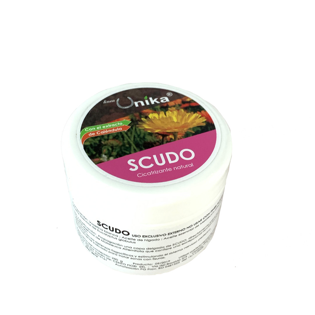 Scudo es la crema curativa para uso tópico, específica para el tratamiento de grietas y abrasiones cutáneas. Formulado sobre la base de una antigua fórmula a base de hierbas, se compone de cera de abeja pura y otros extractos de plantas nobles. La combinación de extractos de hierbas y cera de abejas proporciona resultados curativos y a evidentes después de unas pocas aplicaciones.