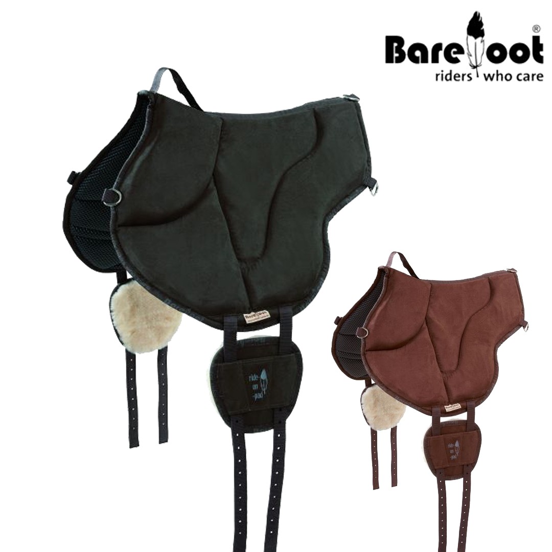 El Barefoot® 'Ride-On-Pad' tiene una cincha en V que distribuye la presión a lo largo de toda la almohadilla. Decidimos deliberadamente en contra de los accesorios de estribos, ya que pararse en los estribos provocaría puntos de presión.