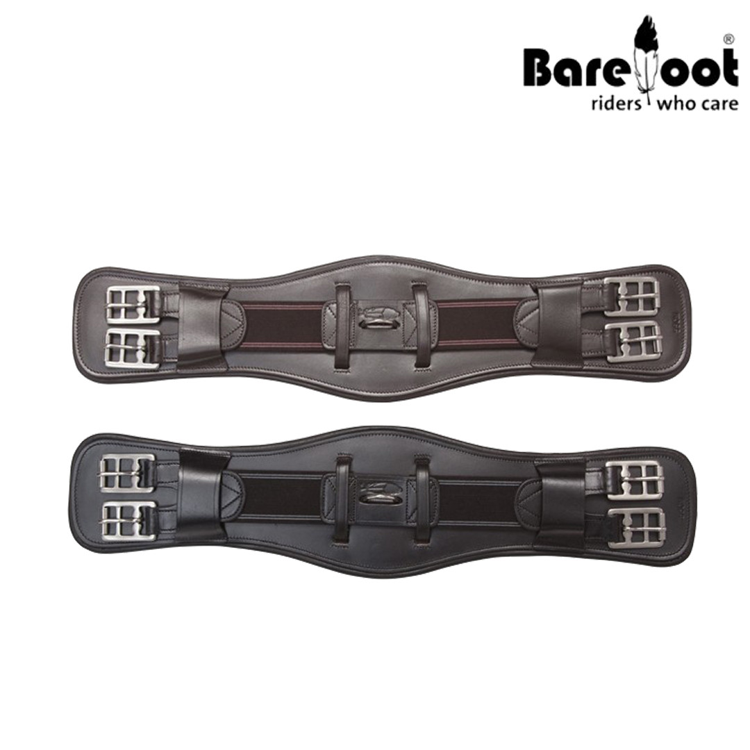 LA cincha Barefoot® tiene dos componentes. La parte superior es elástica y está equipada con 4 hebillas de acero inoxidable. La parte inferior consiste en un relleno grueso y suave rodeado de cuero. El acolchado es capaz de adaptarse y, por lo tanto, se anida suavemente al vientre del caballo sin seguir el movimiento de la silla de montar y el componente elástico. Se evita cualquier tipo de irritación de la piel y hematomas en el área de la circunferencia.