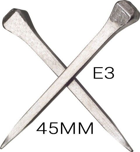Clavo con cabeza rectangular de tamaño medio y cuello largo.
