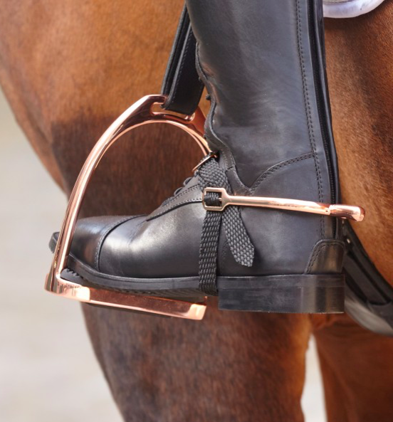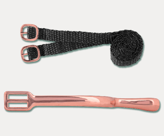 Correa de espuela con hebilla de acero fino en oro rosado.