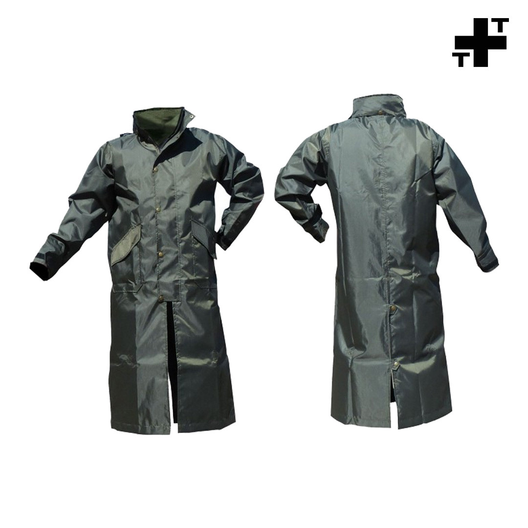 Tiene dos correas para pasar por la pierna para que no se levante la chaqueta.