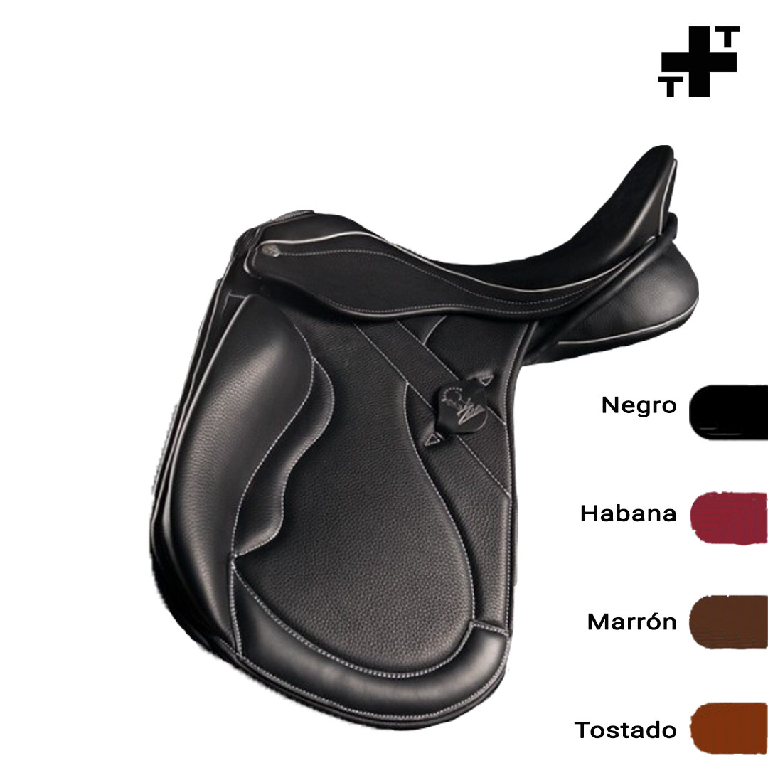 Siguiendo la línea de nuestro eslogan, Tradición y Tecnología T+T, hemos incorporado a esta innovadora y atractiva colección los últimos desarrollos tecnológicos junto a los más avanzados estudios veterinarios y médicos. Aplicando, además, las directrices de grandes saddlefitters de gran prestigio internacional. Todo ello, unido a los 50 años de experiencia como guarnicioneros y a disponer de fábrica propia, nos permite lanzar esta nueva línea de sillas de montar completamente configurables a medida ¡Somos fabricantes!