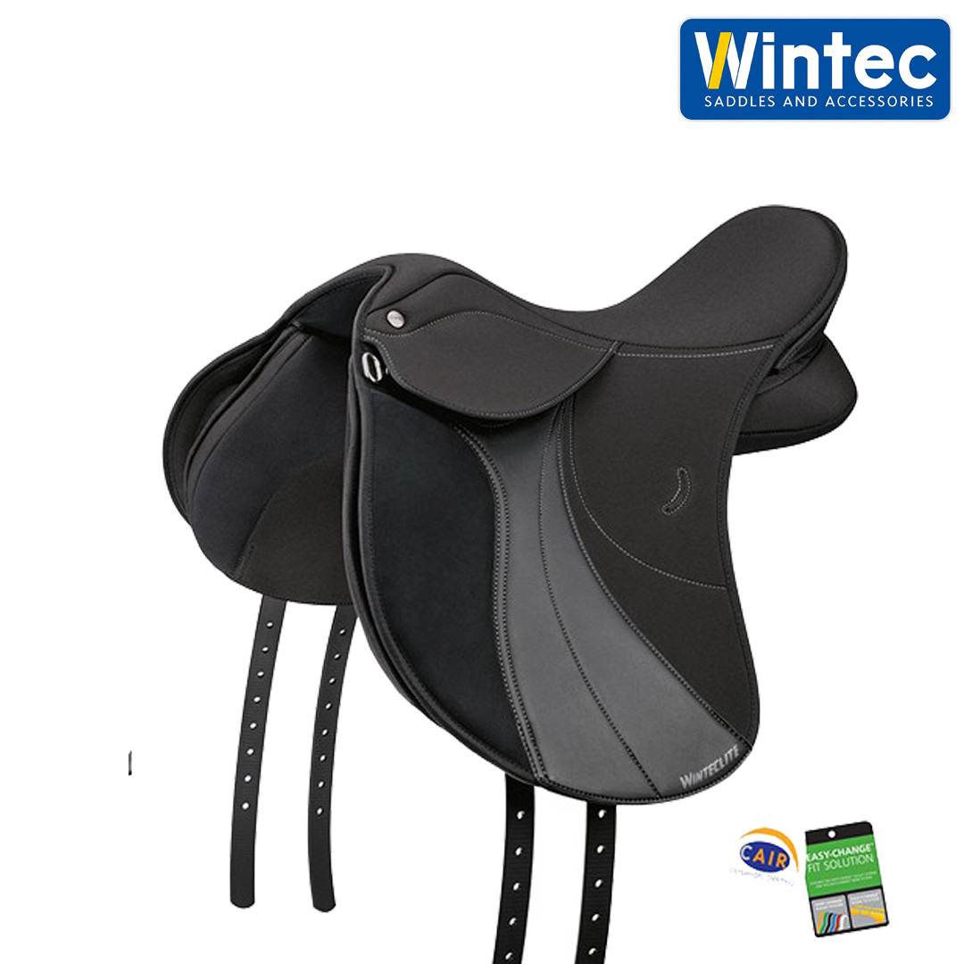 La silla de uso general WINTECLITE se realiza con un nuevo material patentado denominado Equi-Fabric y cuenta con el nuevo y extremadamente suave forro de neopreno en el baste. Además, como todas las sillas WINTEC, contiene los sistema patentados CAIR en los bastes y EASY-CHANGE FIT SOLUTION que permite adaptar la silla tanto en el puente como en los bastes a la morfología de cualquier caballo.