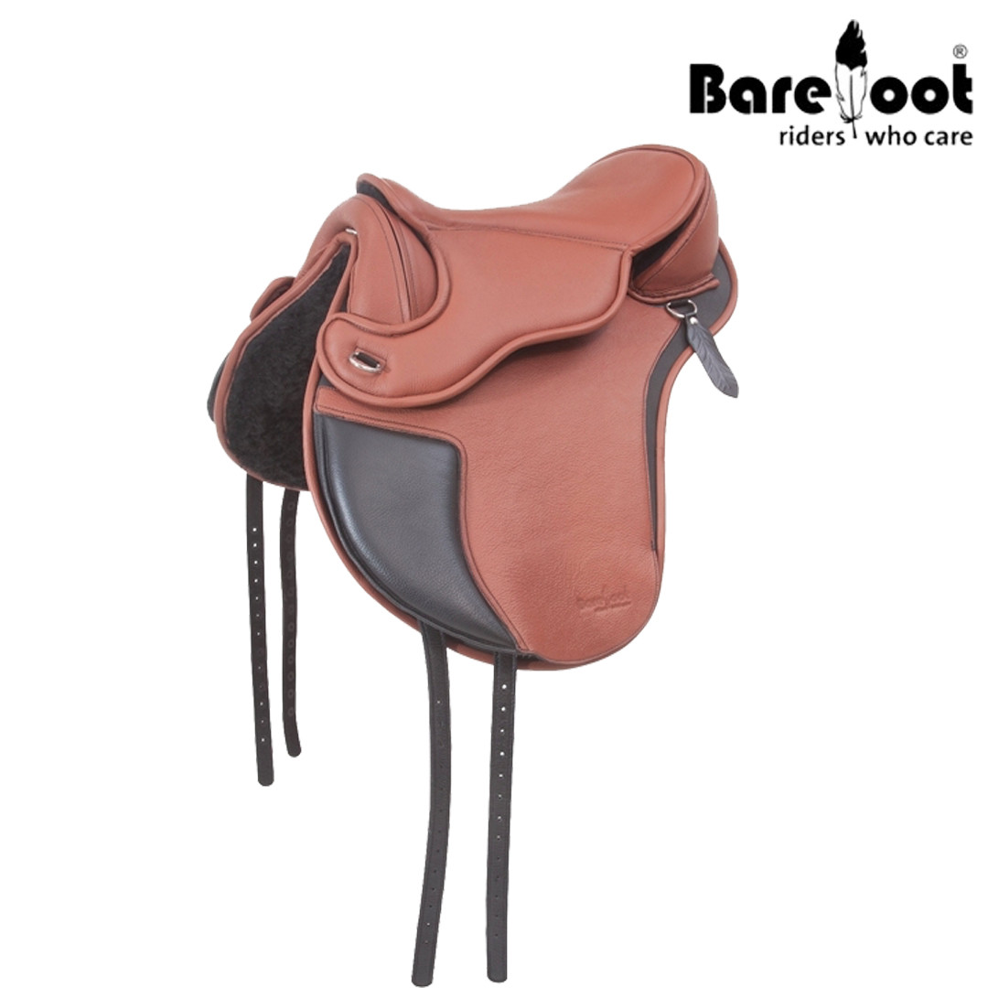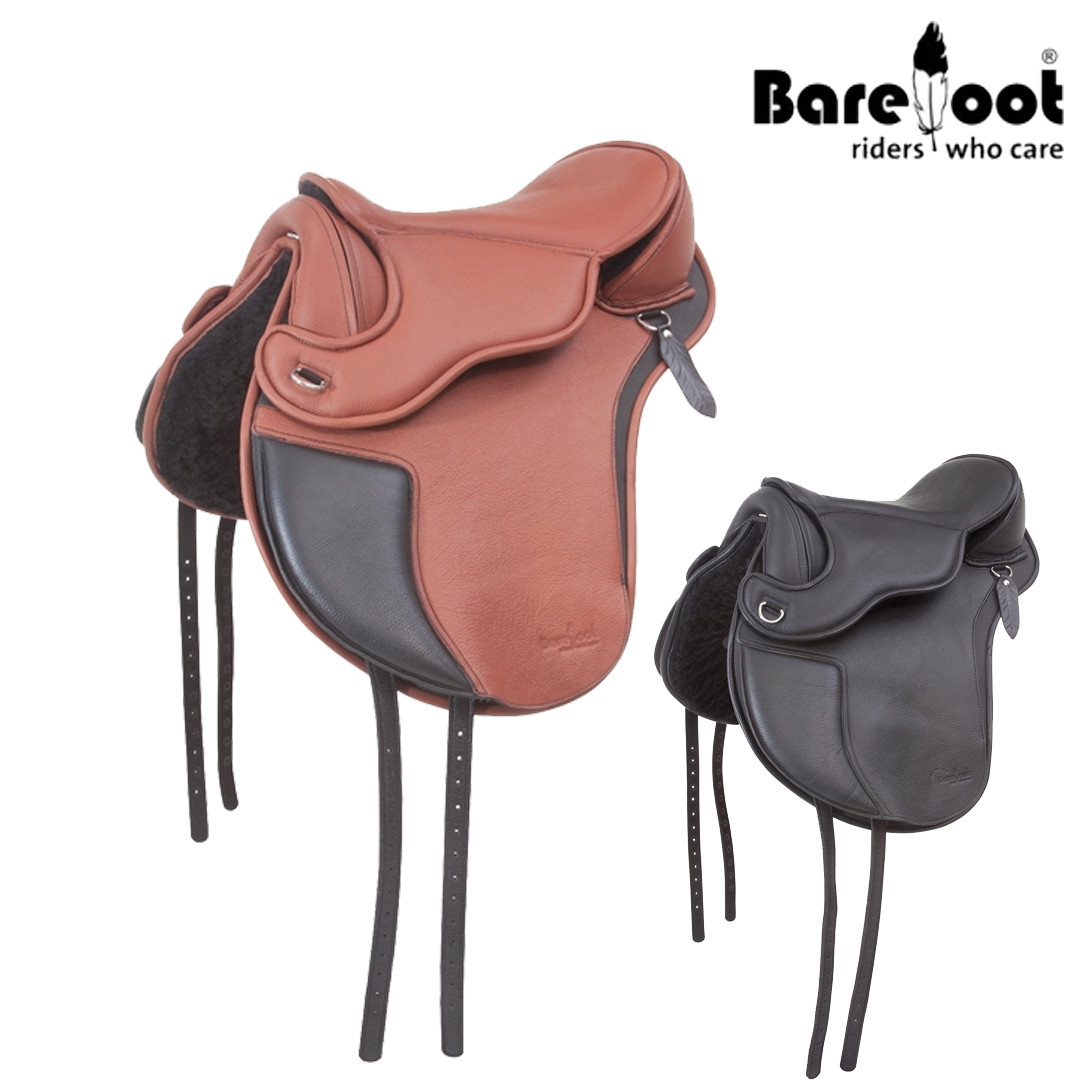 Las sillas de montar sin armaduras BAREFOOT se acoplan perfectamente. Fabricadas en piel muy flexible, el puente delantero se puede cambiar y así no presiona la escápula u homoplato del caballo.