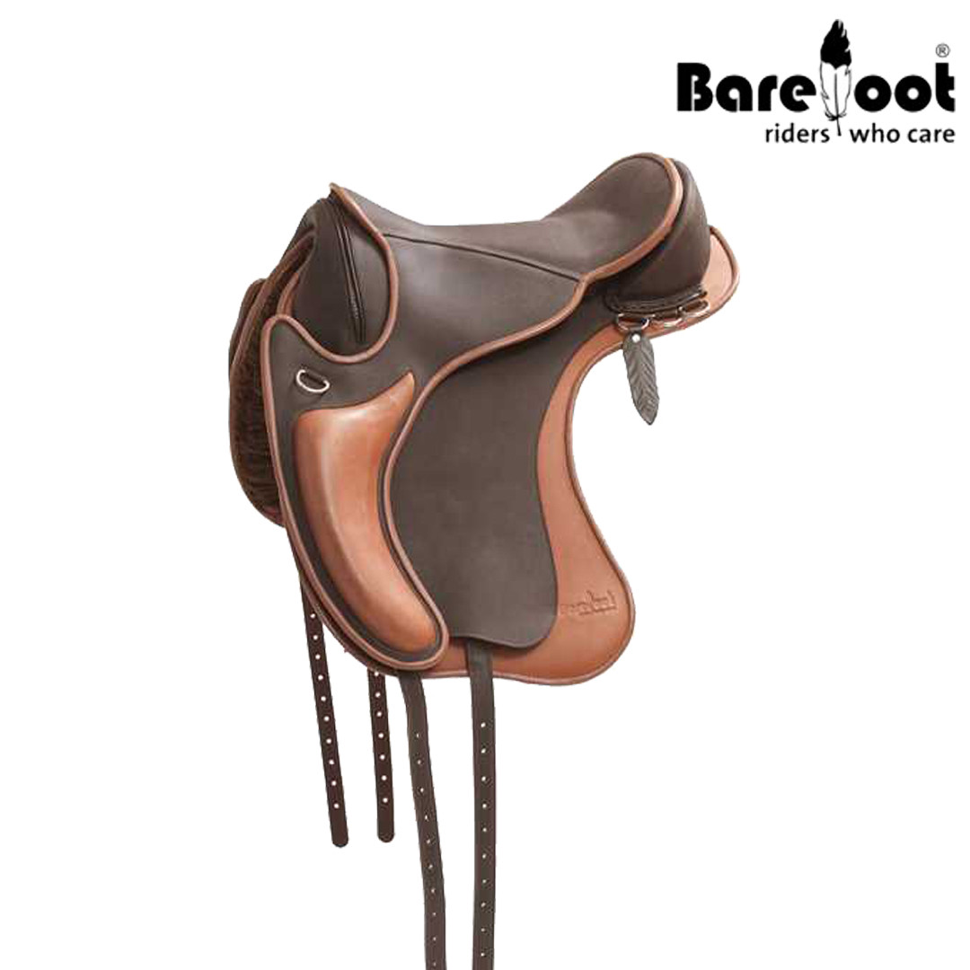 Las sillas de montar sin armaduras BAREFOOT se acoplan perfectamente. Fabricadas en piel muy flexible, el puente delantero se puede cambiar y así no presiona la escápula u homoplato del caballo.