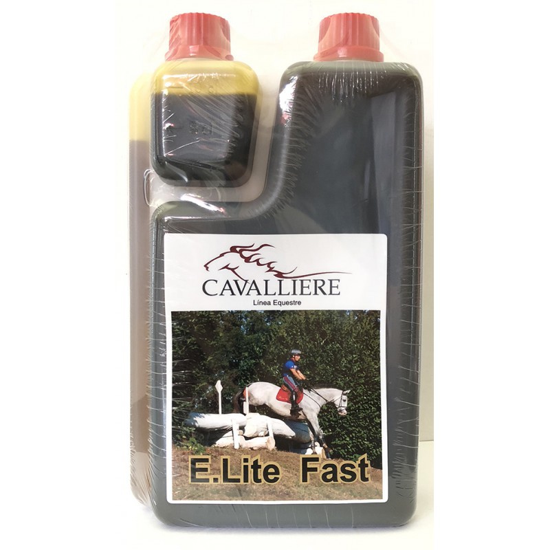E. LITE FAST de Cavalliere es un electrolito liquido formulado para ofrecer la comodidad de administración y particularmente idóneo para los caballos que rechazan una gran cantidad de polvo en la comida.