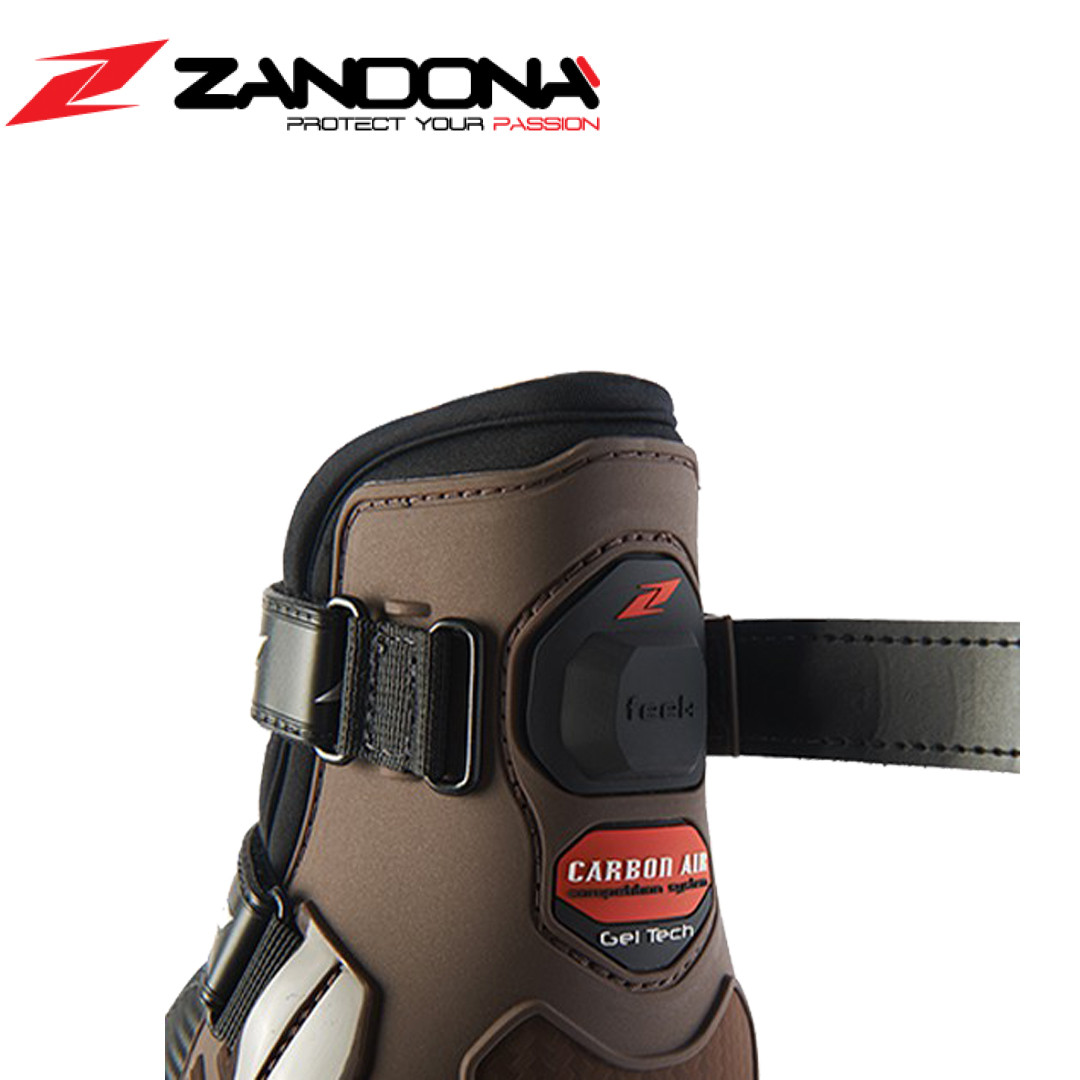 Fibra de carbono bajo la carcasa para proteger las articulaciones de la fricción externa y mejorar la resistencia a los choques. Zona Flex interna para libertad de movimiento. Dispone de correas con velcro que cierran de manera segura. Ajuste perfecto para la extremidad del caballo.